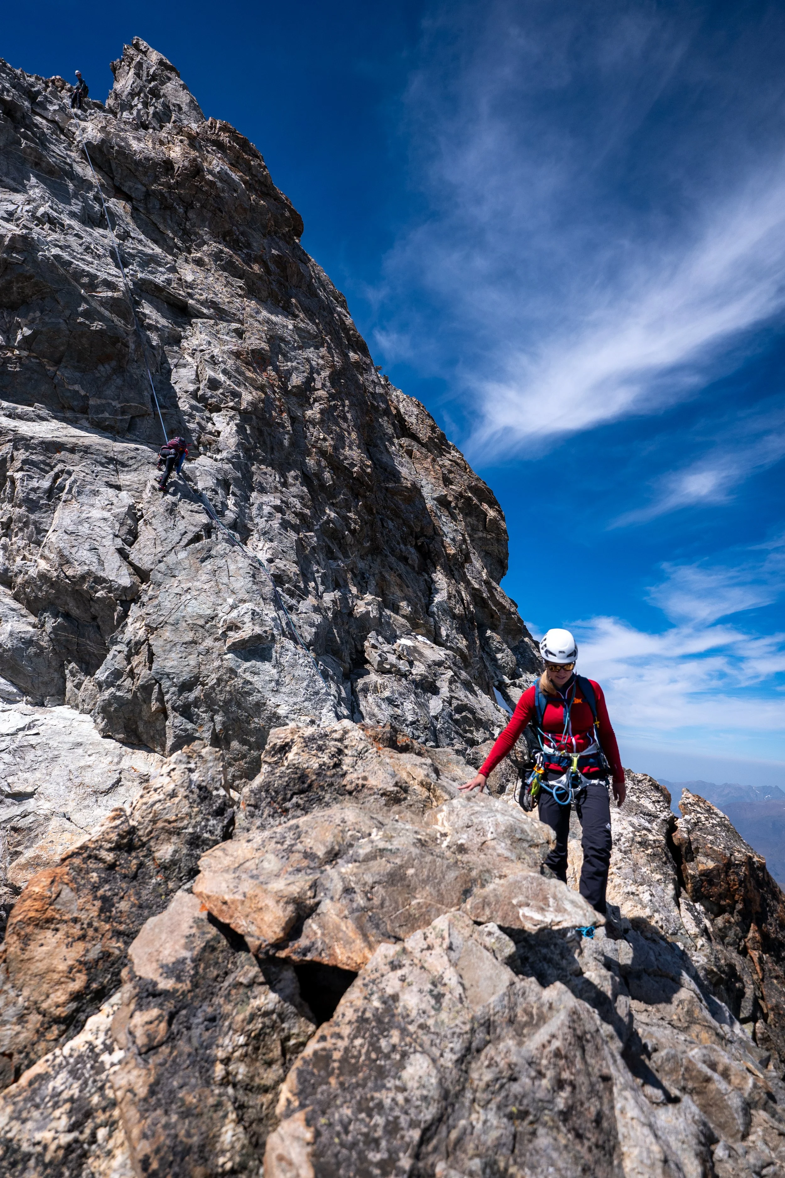 Mit Julia, Maria und Franz ging es den Sommer La Grave über die Promotoire Hütte auf die Meije. Die klassische Verschneidung bei sehr trockenen Verhältnissen. Wir sind anfangs seilfrei und dann am laufenden Seil sehr flott und ohne Probleme vorangekommen. Der Abstieg ins Tal hat sich dann aber mal wieder ganz fürchterlich gezogen.